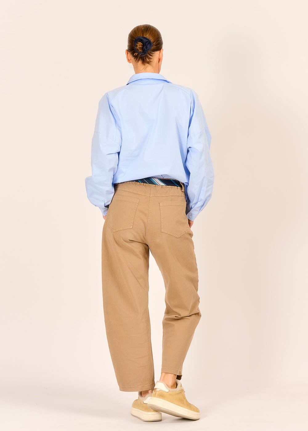 Diese lässige Chino besticht durch ihren entspannten Schnitt und das angenehme Material, das sie zum idealen Begleiter für moderne Alltagslooks macht. Der wahre Clou ist jedoch der originelle Gürtel: Eine Krawatte dient hier als stylischer Akzent und verleiht der Hose eine einzigartige, raffinierte Note. So wird aus einem Klassiker ein echtes Fashion-Statement, das spielerisch Eleganz und Lässigkeit miteinander verbindet.