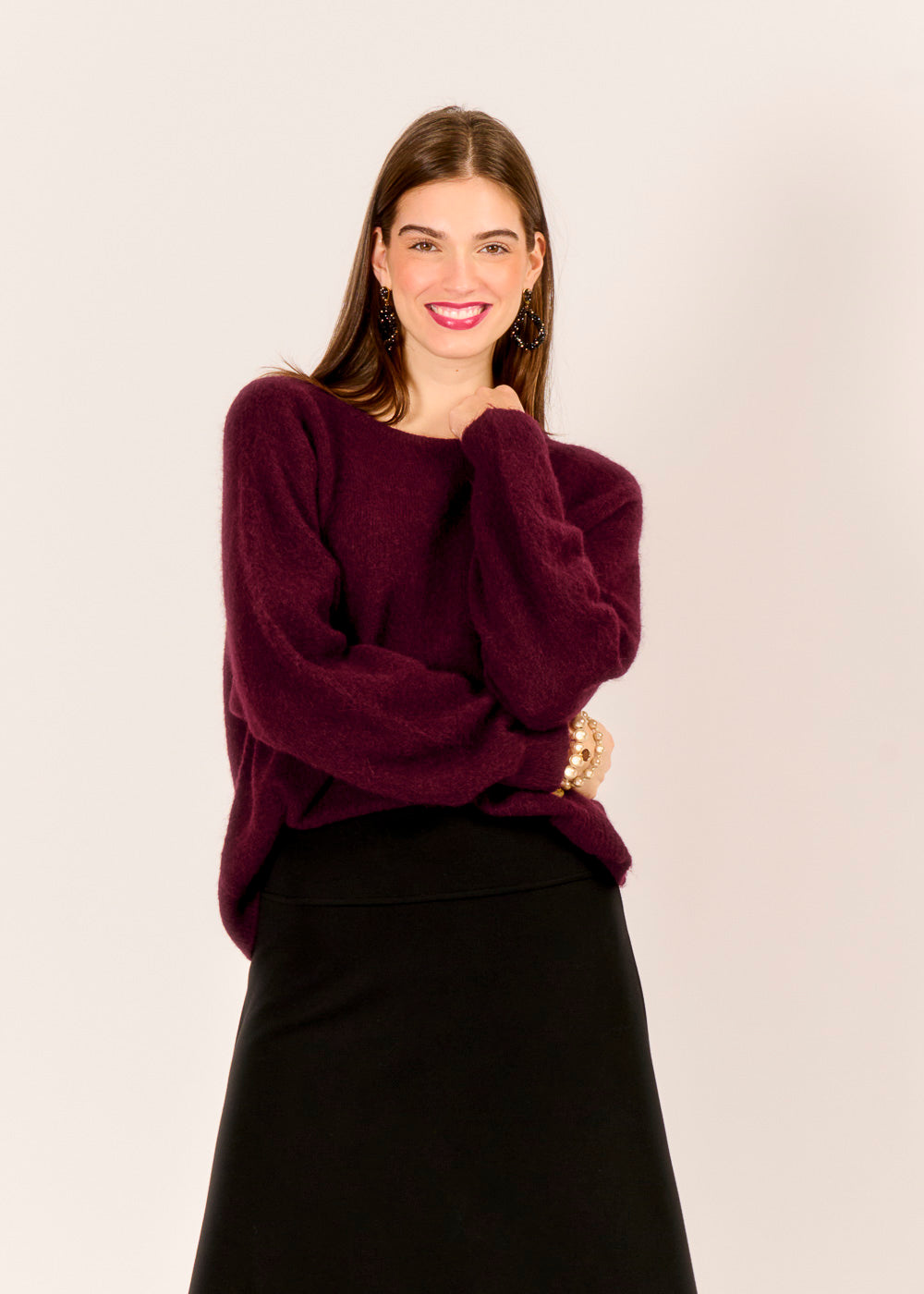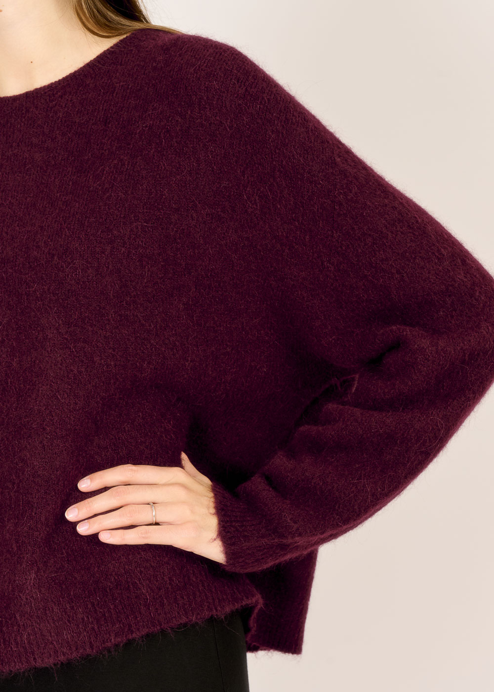 Dieser weiche, anschmiegsame Strickpullover umhüllt dich. Der Vino-Ton verleiht deinem Look eine warme, moderne Ausstrahlung. Ob lässig im Alltag, elegant für besondere Anlässe oder mit der passenden Hose als monochromer Look gestylt – die Kombinationsmöglichkeiten sind endlos.