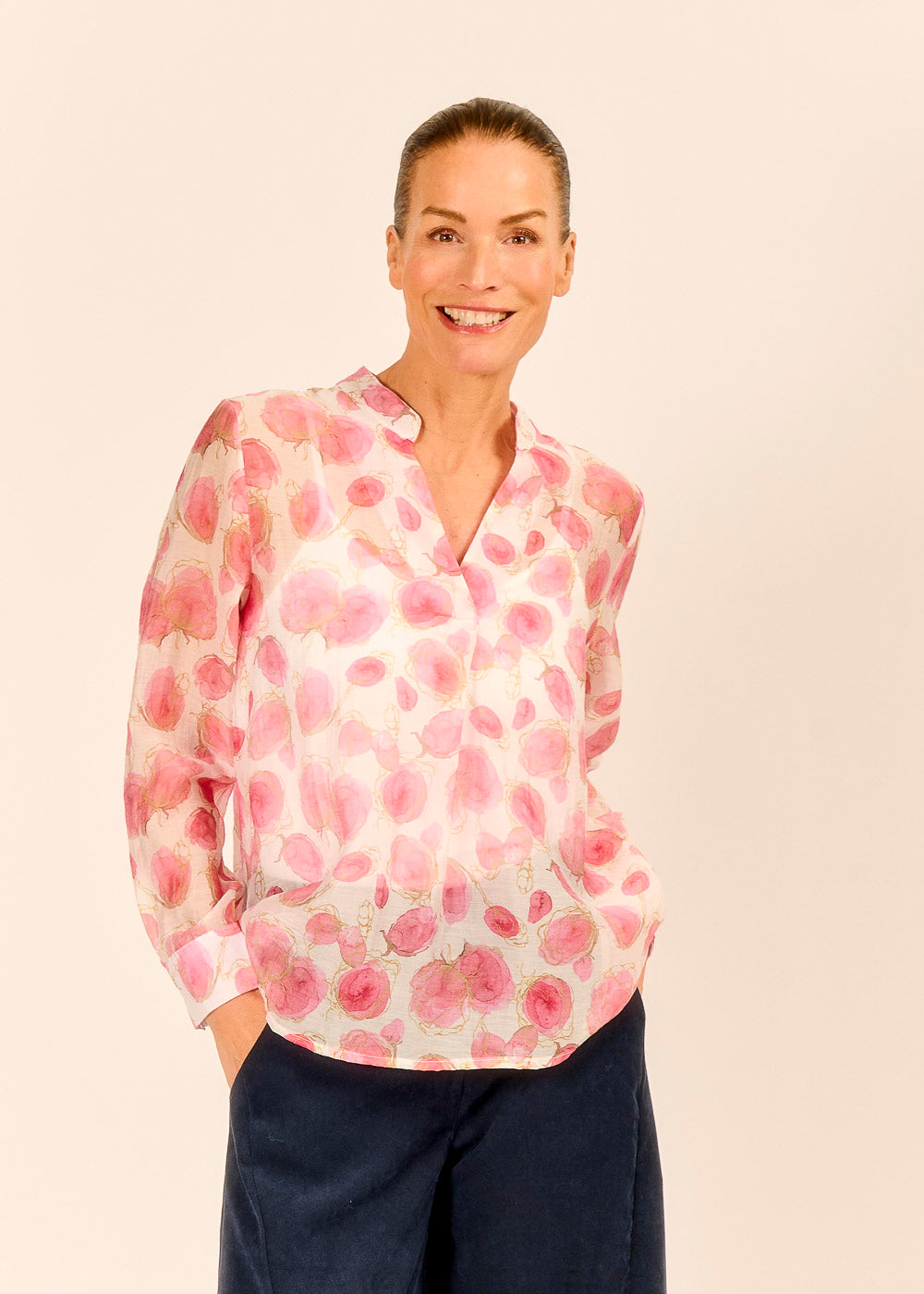 Die gemusterte Tunikabluse strahlt die Leichtigkeit des italienischen Frühlings aus. Der Hingucker aus Tencel Fasern verleiht jedem Look eine feminine Eleganz.